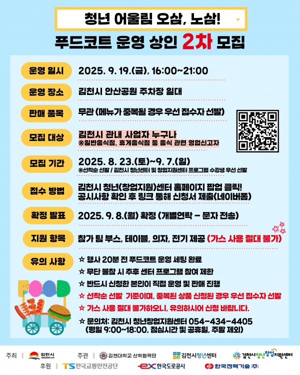 김천시 청년 어울림 한마당, 푸드코트 운영 상인 2차 모집 시작합니다!
