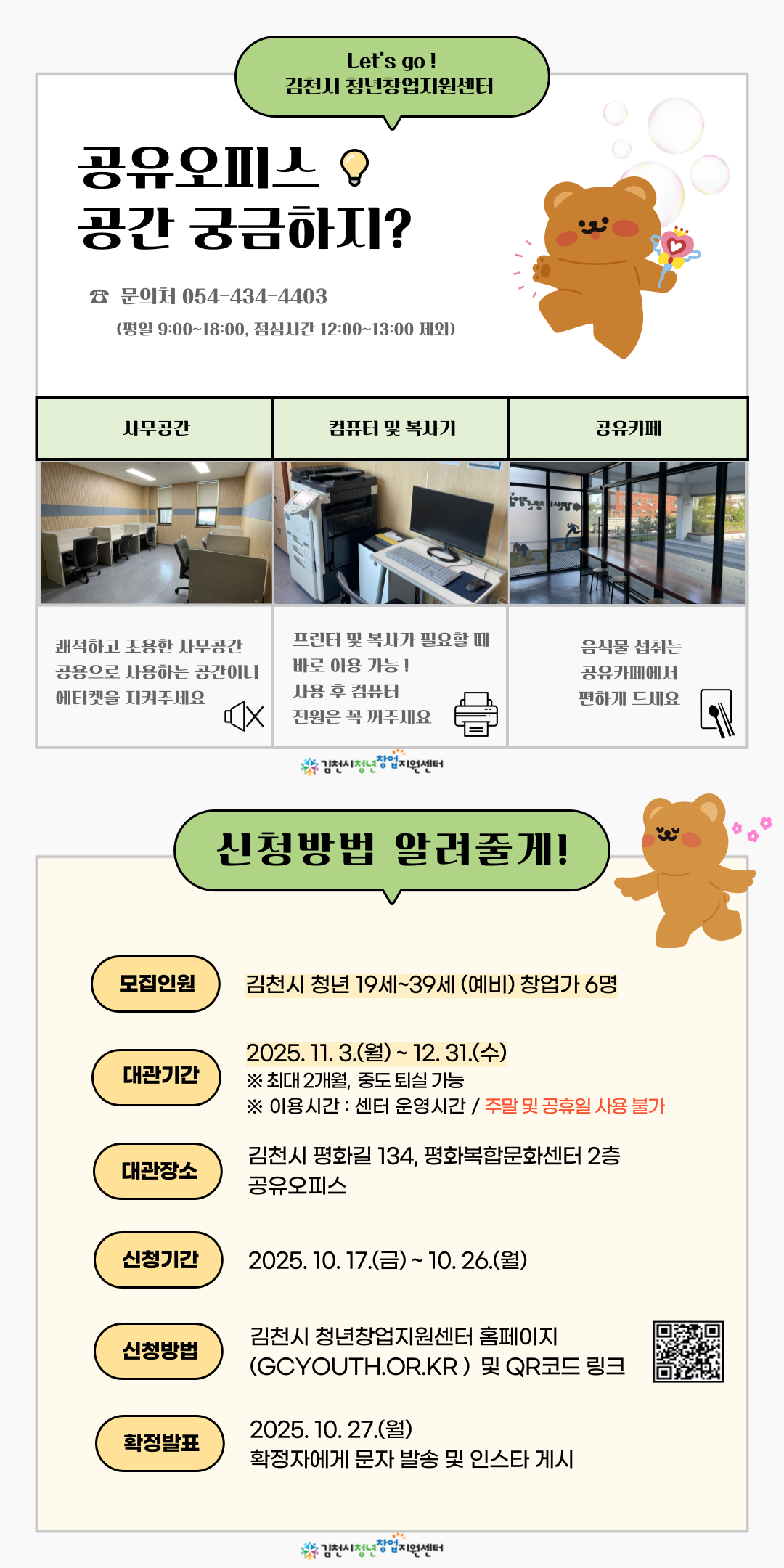 김천시 청년창업지원센터 공유 오피스 2개월 장기대관 신청자를 모집합니다